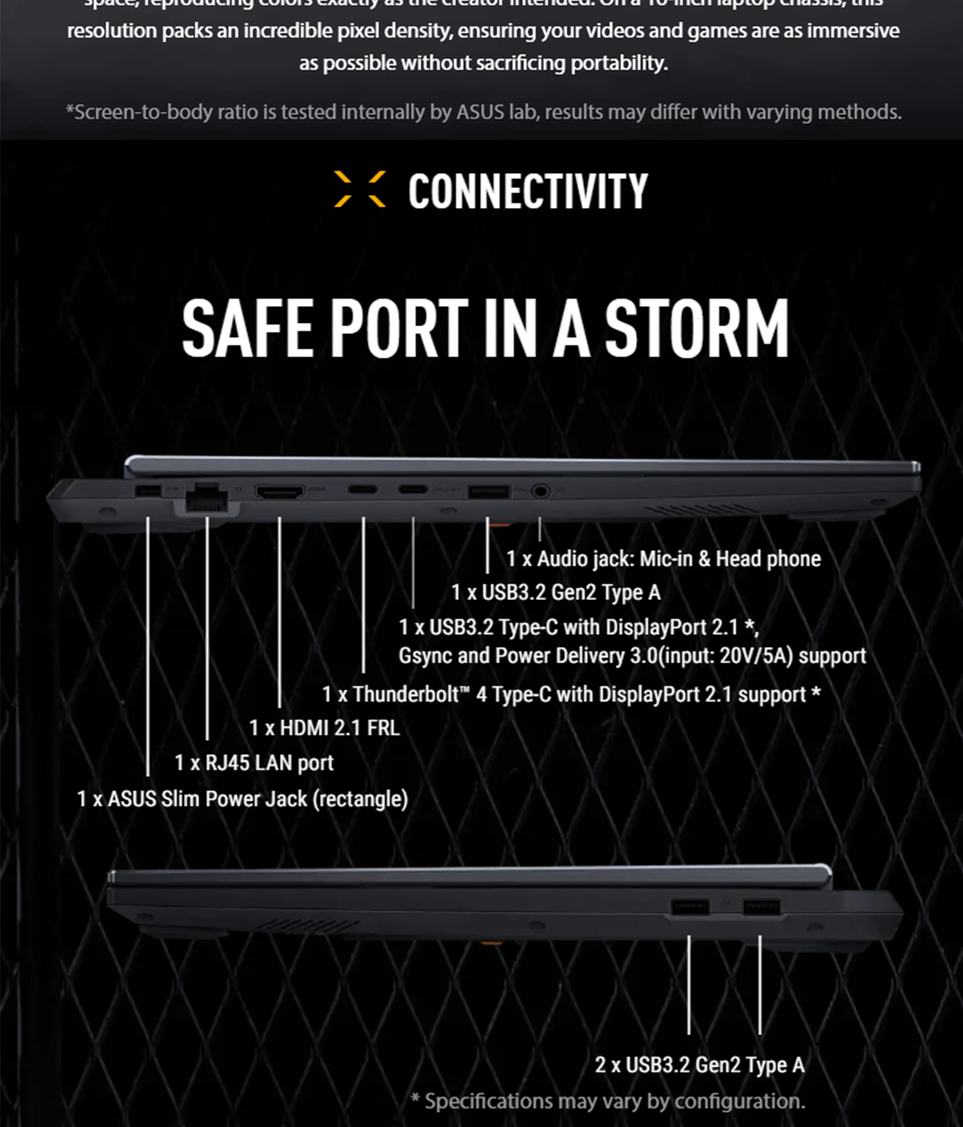 1x Thunderbolt™ 4 with support for DisplayPort™ / G-SYNC (data speed up to 40Gbps) - Battery / Power Supply