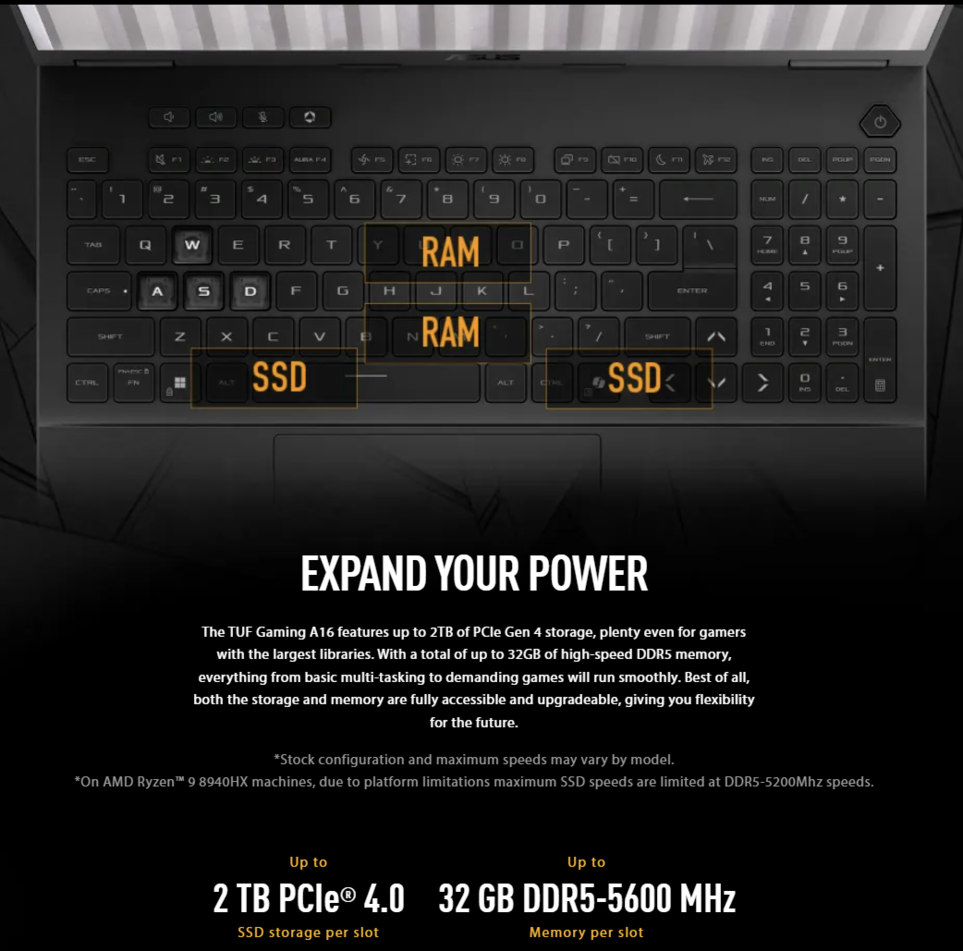 - 16GB RAM DDR5-5200 SO-DIMM, Max Capacity:64GB