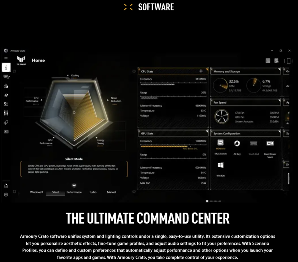 - 16-inch, FHD+ 16:10 (1920 x 1200, WUXGA), IPS-level, Anti-glare display, sRGB:100%, Adobe:75.35%, Refresh Rate:165Hz, Response Time:3ms, G-Sync, MUX Switch + NVIDIA® Advanced Optimus