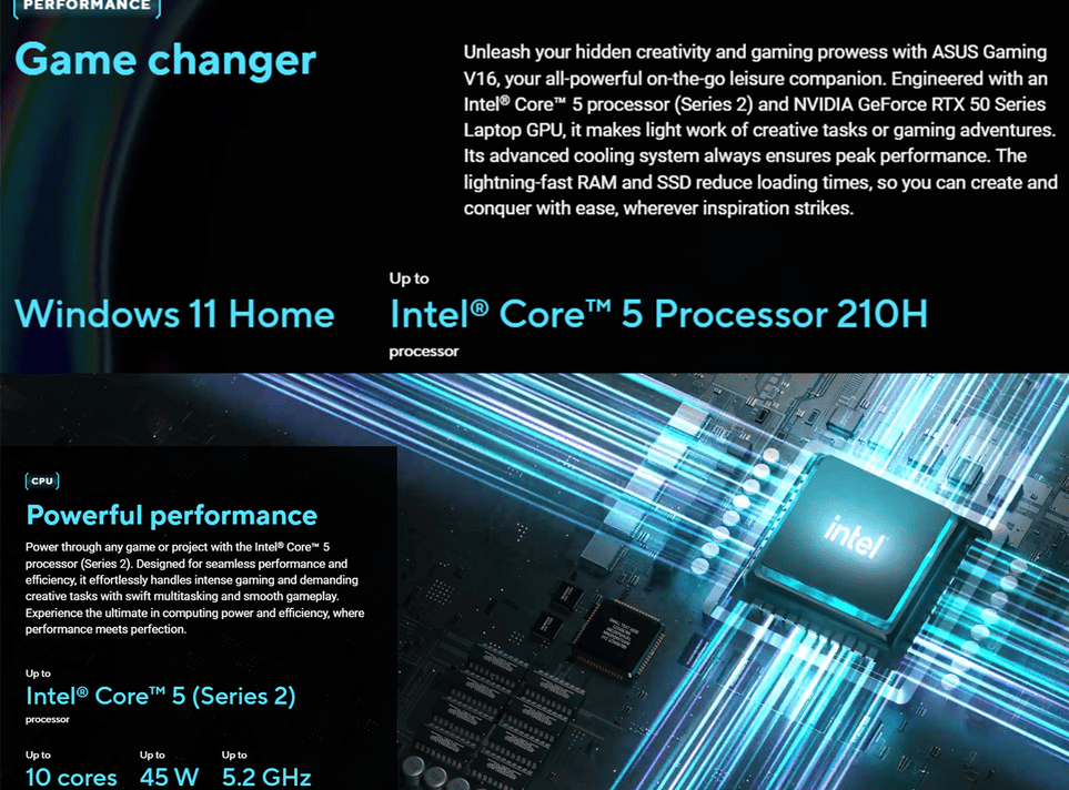 - Intel® Core™ 5 210H Processor