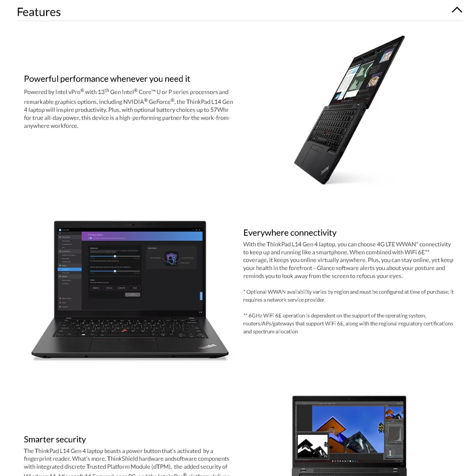 - 14″ FHD (1920×1080) IPS 250nits Anti-glare, 45% NTSC