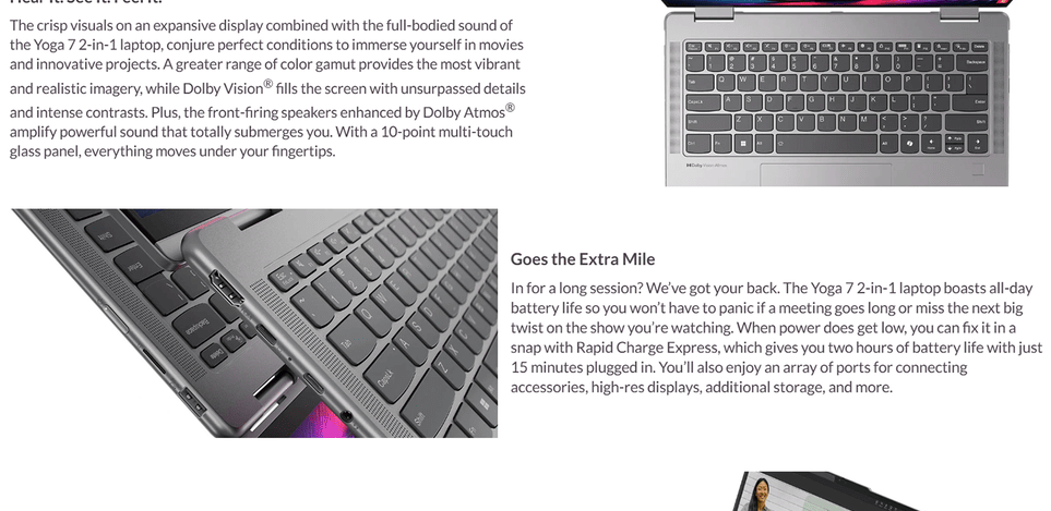 - Stereo speakers, 2W x2, optimized with Dolby Atmos®, Smart Amplifier (AMP)