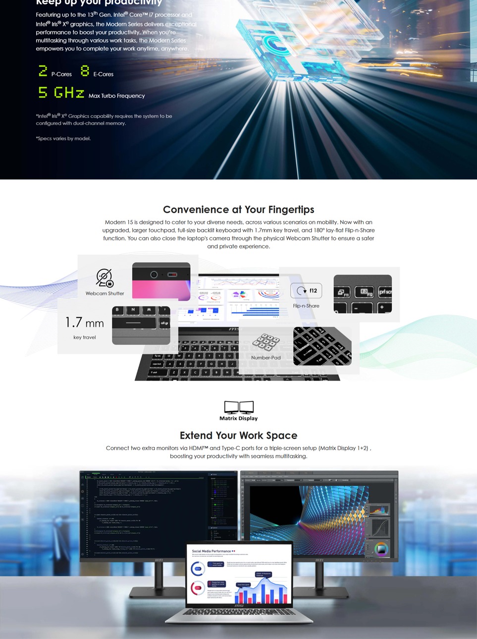 - Intel® Wi-Fi 6E AX211, Bluetooth v5.3